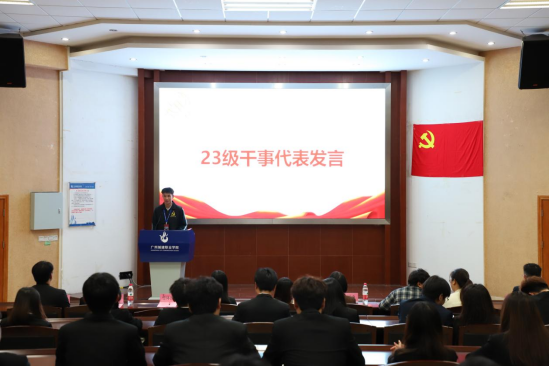 接下来,刘冰冰、李思丽宣读了优秀干部、优秀干事名单。陈伟锋、陈艺辉分别为受表彰的同学颁发证书。优秀干部代表沈文生,优秀干事代表曾一帆分别上台分享了自己过去一年在党建办公室的工作心得体会。他们的发言充满了对工作的热爱和对未来的信心,赢得了在场师生的热烈掌声。他们激励党建办公室全体成员以求实奋进、迎难而上的姿态,齐心协力做好各项工作。