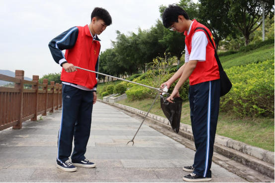 随后,同学们迅速投入到有序的清洁工作中。大家不怕脏、不怕累,干劲十足,对公园里的烟蒂、废纸、塑料袋等垃圾进行清除。公园里的志愿红,形成了一道美丽的风景线。