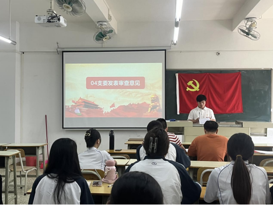 支部委员王宇翔、叶勤分别宣读支委审查意见和家庭成员政治情况,客观公正地提出优点与不足、批评与建议,并表明态度。