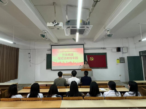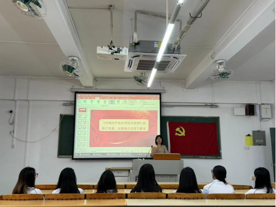 活动伊始,党支部书记苏碧玲向全体党员介绍了活动的目的和意义,并强调了党的纪律对于党员成长和支部发展的重要性。她鼓励大家深入学习《中国共产党纪律处分条例》,她指出:“不管时代的变迁,身份的转变,每个人心里都要有一把尺子, 我们用它来衡量别人, 更要时常度量自己。”