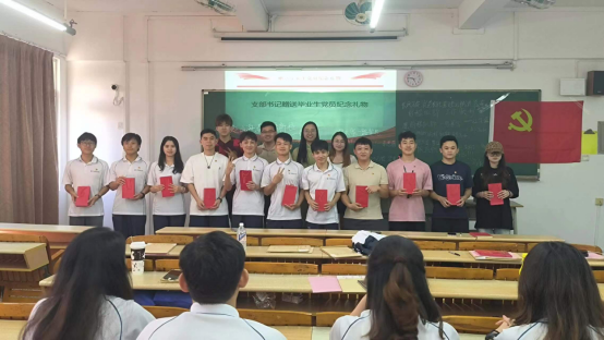 支部委员为毕业生党员赠送纪念品