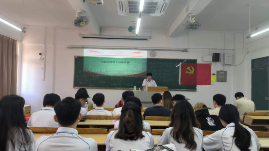 主题党日活动在雄壮的国歌中拉开序幕,全体与会党员首先观看了视频,一起回忆毕业生党员在校园里的点点滴滴;随后,毕业生党员围绕着“就业”、“升学”、“创业”等与大家分享交流;支部委员代表党支部为毕业生党员们赠送纪念品,让毕业生党员感受到党组织的关怀和祝愿;梁土权做总结,他向党员提出了几点希望:一是强化身份意识,毕业后要继续发挥党员先锋模范作用;二是坚定理想信念,要以学习新修订《中国共产党纪律处分条例》为契机,牢固树立共产主义远大理想和中国特色社会主义共同理想,做合格党员;三是要矢志永久奋斗,要用行动践行社会主义核心价值观,敢于斗争、敢于担当,在党和人民需要时挺身而出,做敢于斗争党员。