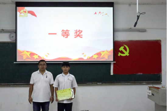 在热烈的掌声中,刘杰、苏碧玲、陈艺辉、王宇翔依次上台,为获得一、二、三等奖以及优秀奖的同学颁发荣誉证书和奖品。