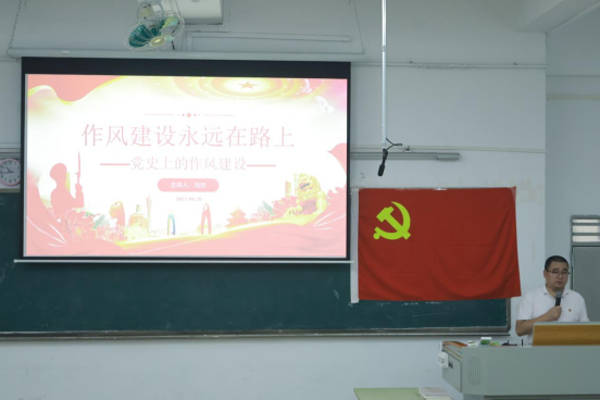 大会在雄壮的国歌声中拉开帷幕。全体与会人员庄严肃立,齐声高唱《义勇军进行曲》,嘹亮的歌声激荡着青年党员的爱国情怀。随后,刘杰以“作风建设永远在路上”为主题讲授专题党课,结合新时代全面从严治党要求,深入解读中央八项规定精神实质。他强调,毕业生党员要始终牢记“三个务必”,在工作岗位上当好纪律标杆,在生活实践中永葆政治本色,以清正廉洁的作风践行初心使命。