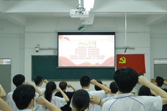 “我志愿加入中国共产党……”刘杰领誓,全体党员面向鲜红党旗高举右拳,重温入党誓词。铮铮誓言响彻会场,展现新时代青年党员矢志不渝跟党走的坚定决心。大会在激昂的《国际歌》旋律中圆满落幕,毕业生党员们将带着组织的嘱托与期望,踏上人生新征程。