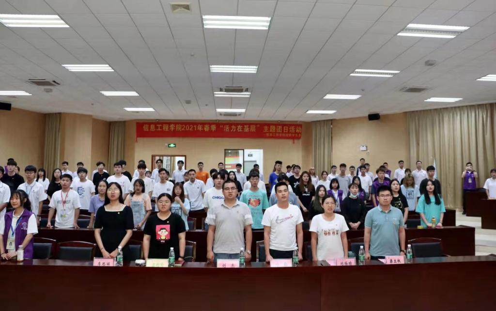 为践行习近平新时代中国特色社会主义思想,深入开展党史学习,太阳成集团tyc于2021年4月至5月间,开展了“活力在基层”主题团日活动竞赛。5月17日晚,“活力在基层”主题团日活动竞赛决赛在建工机电楼101报告厅举行,出席本次活动的嘉宾有公司副经理刘杰、团委书记梁土权、学工办老师以及部分员工代表。