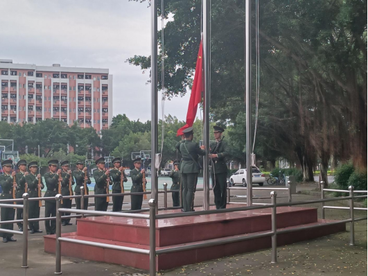 升旗仪式在清晨的阳光中拉开序幕。随着庄严的国歌声响起,五星红旗在三区篮球场上缓缓升起。全体师生目光坚定地注视着国旗,表达了对祖国的无限忠诚和敬意。