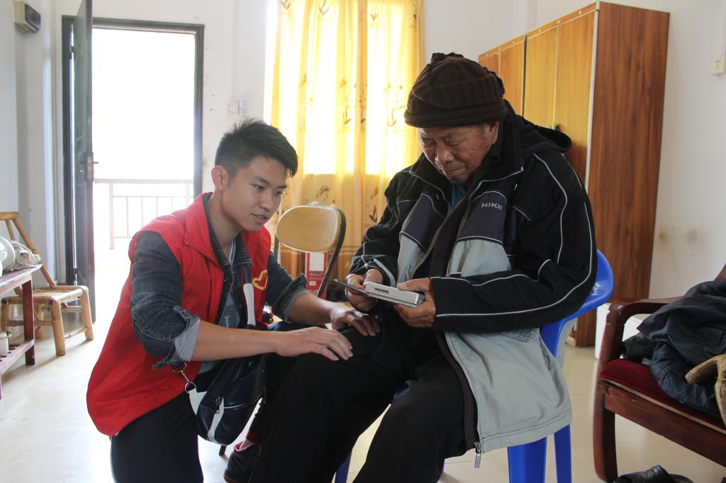 志愿者教老人使用收音机 |