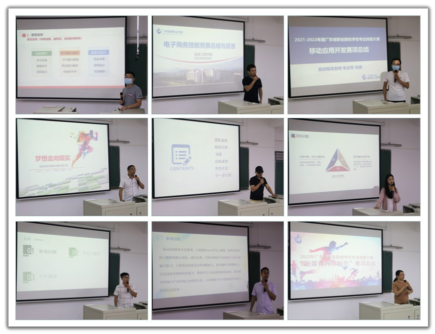 9个赛项依次进行总结汇报。各赛项指导老师从挑选参赛选手、备赛训练、比赛过程等方面进行了全面回顾总结,纷纷表示取得如此成绩,是员工努力拼搏、公司领导重视的结果。同时也分析了不足之处,提出建议,并对下年度的参赛作了详细的谋划。