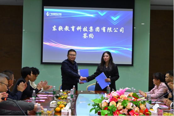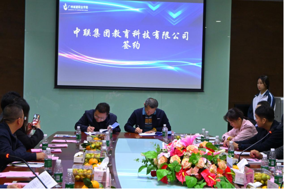 会上,科技处副处长苏崇坚代表广东城建职业教育集团分别与中科泰岳(北京)科技有限公司、中联集团教育科技有限公司、东软教育科技集团有限公司、广州人从众信息科技有限公司、广州蓝醇信息科技有限公司、广州腾育信息科技有限公司、广州聪明云软件科技有限公司、广州扩境科技有限公司签订校企合作协议。