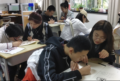 东华大学“牵手艺术彩虹”志愿服务队员工志愿者教孩子绘画