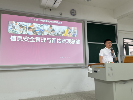 信息管理安全与评估赛项教师代表李明和数字化产品设计与开发赛项教师代表王中州从备赛训练工作开展情况、比赛过程等方面进行了回顾总结,同时也分析了存在的问题,提出建议,并对下年度的参赛制定计划与目标。