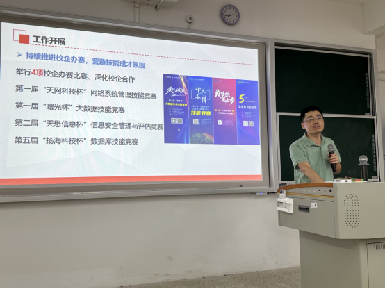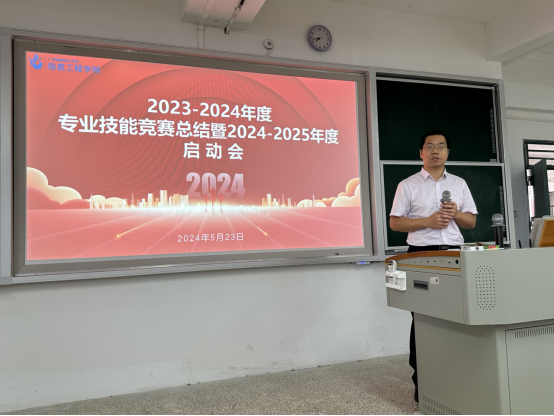 为总结经验、表彰先进、激发师生参赛热情。5月23日,公司在信工财经楼520召开2023-2024年度广东省职业院校技能竞赛总结表彰暨2024-2025年度启动会。公司经理曹春华、办公室主任吴坚彬、各赛项师生团队及2024-2025年度计划参赛师生参加了大会,会议由副经理郄彬主持。