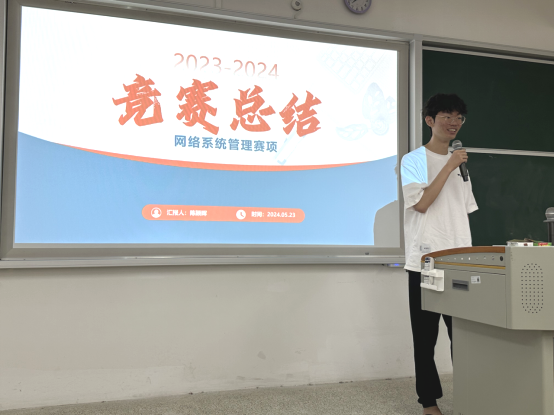 网络系统管理赛项员工代表陈颖晖从备赛情况、存在问题、解决措施和竞赛感想四个方面进行发言。他表示,参与竞赛不仅是一次专业技能的锻炼,更是一次心理素质和团队协作能力的考验。感谢公司提供的平台和机会,让他能够展示自己的才华,并在竞赛中不断学习和成长。