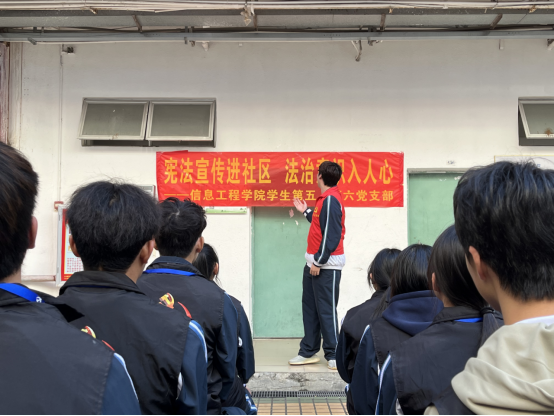 紧接着,党员同志分为若干小组,进入员工宿舍进行宪法知识宣传。他们结合习近平法治思想,通过现场讲解、问答等方式,利用通俗易懂的言语向同学们普及宪法知识,引导大家树立宪法意识,维护宪法权威。