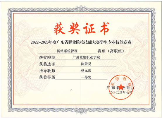 大学期间,他一心努力学习专业技术知识,在加入网络系统管理技能竞赛团队后,更是把所有的时间投入到集训和比赛中。在竞赛集训期间,他不断加强专业理论知识学习,以确保对每个内容模块的理解和应用,不断提高自身网络排查处理能力。许久的沉淀终有结果,他先后荣获中华人民共和国第二届职业技能大赛广东省选拔赛“网络系统管理”项目第二名、2022-2023 年度广东省职业院校技能大赛员工专业技能竞赛“网络系统管理“赛项一等奖。