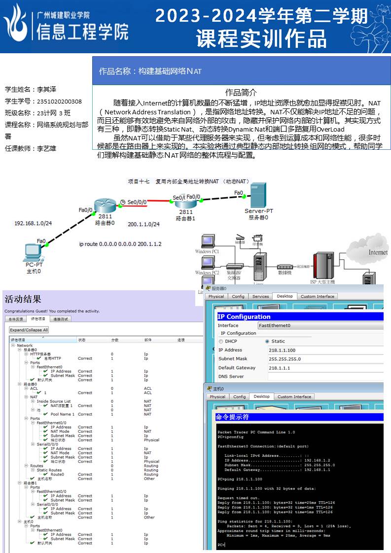 太阳成集团tyc2023-2024学年第二学期实训室优秀实训作品展(2412 信息安全综合实训室)