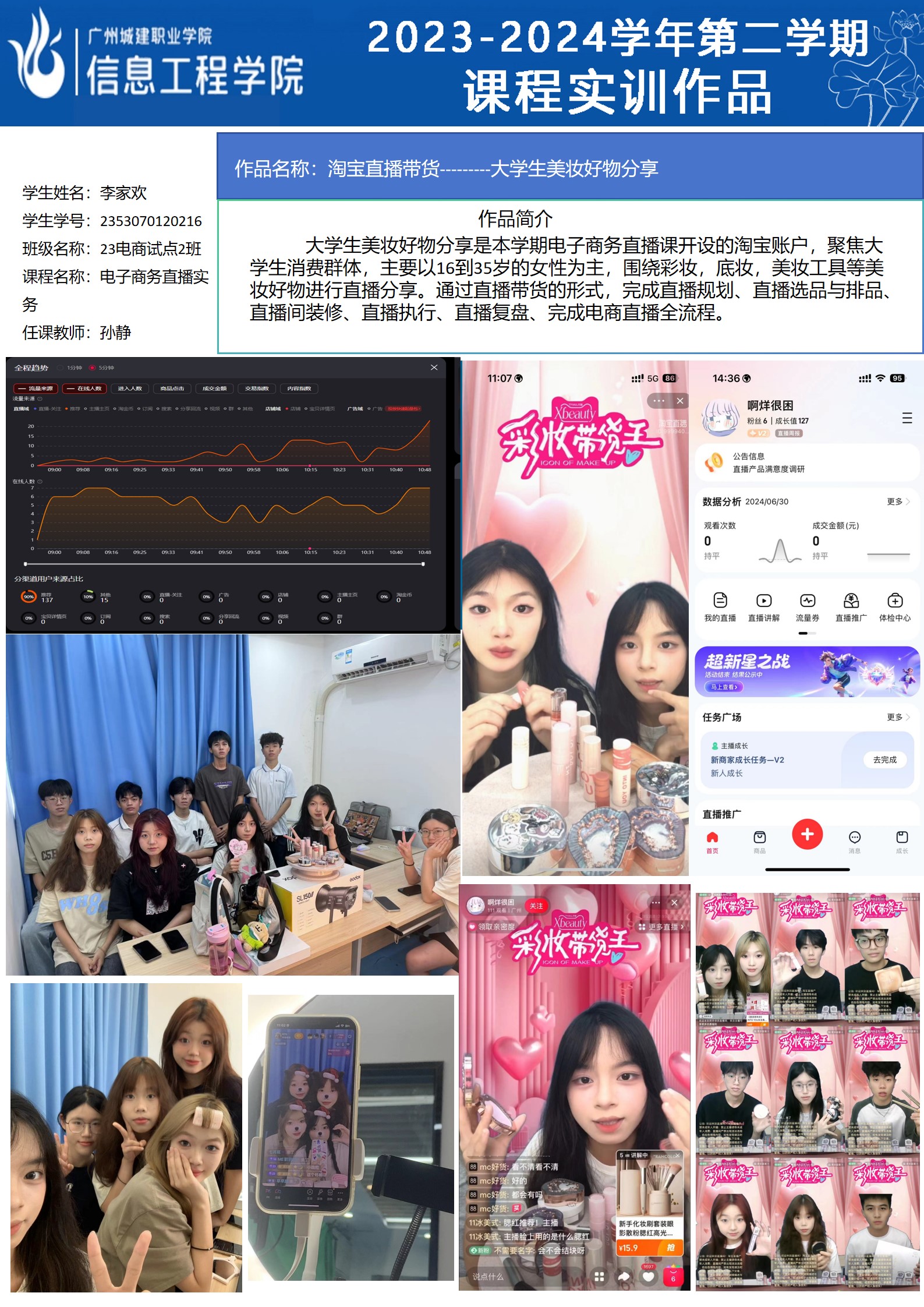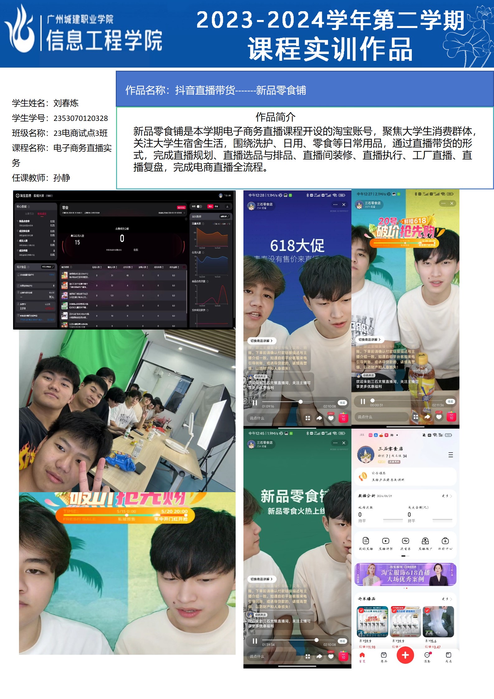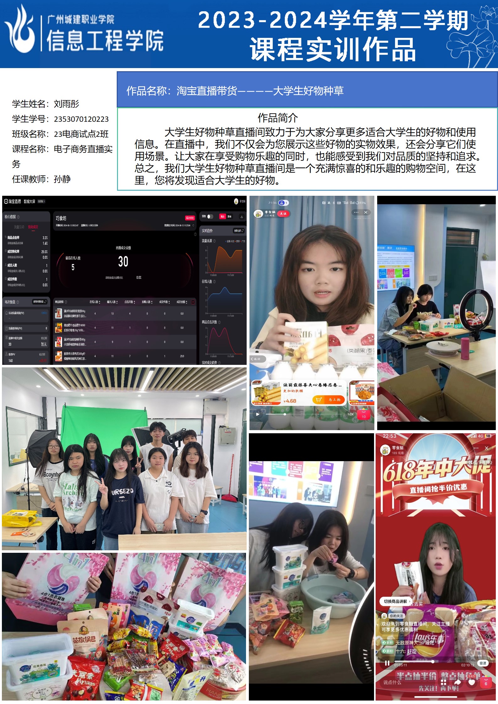 太阳成集团tyc2023-2024学年第二学期实训室优秀实训作品展(2609 直播电商综合实训室)