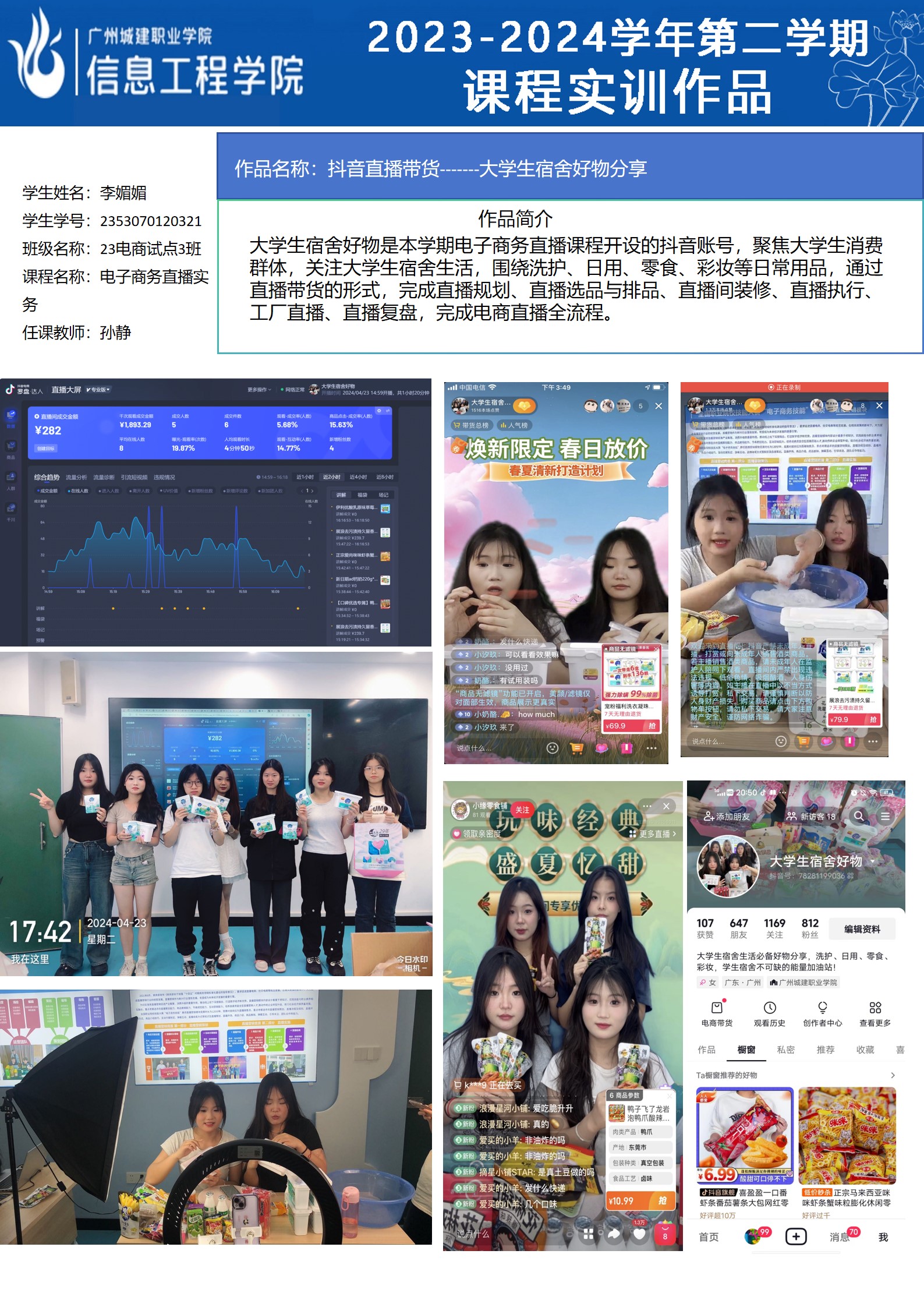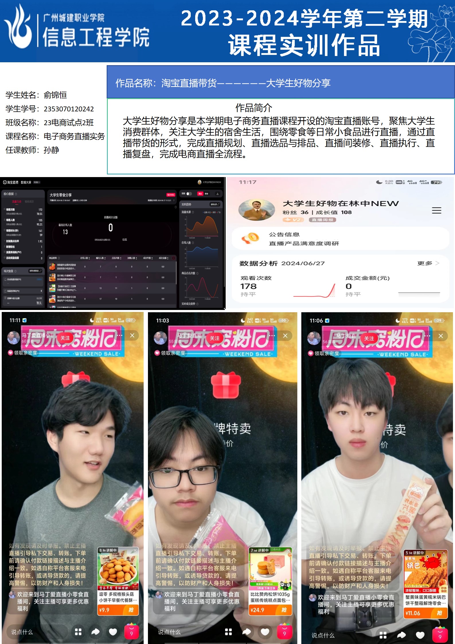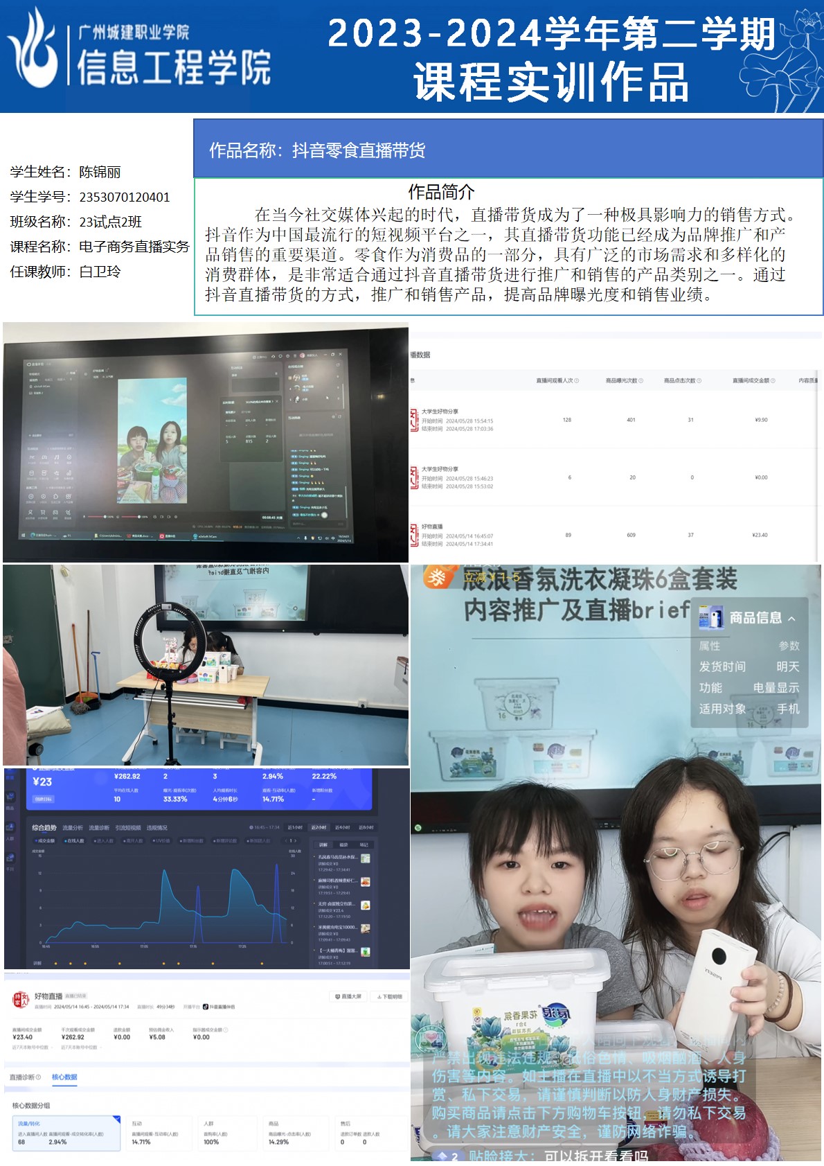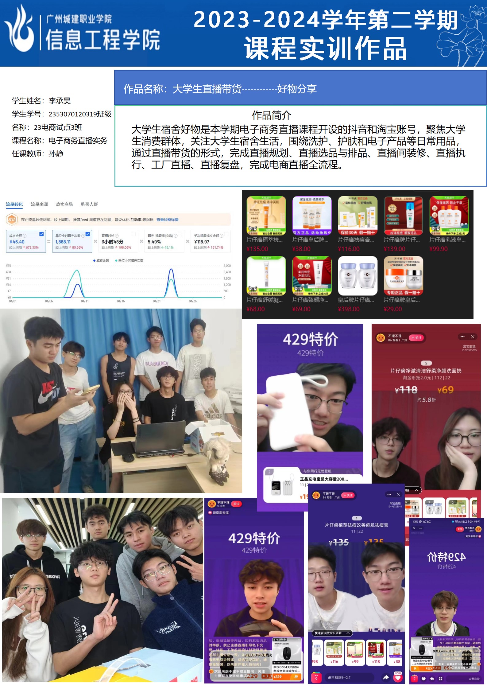 太阳成集团tyc2023-2024学年第二学期实训室优秀实训作品展(2609 直播电商综合实训室)