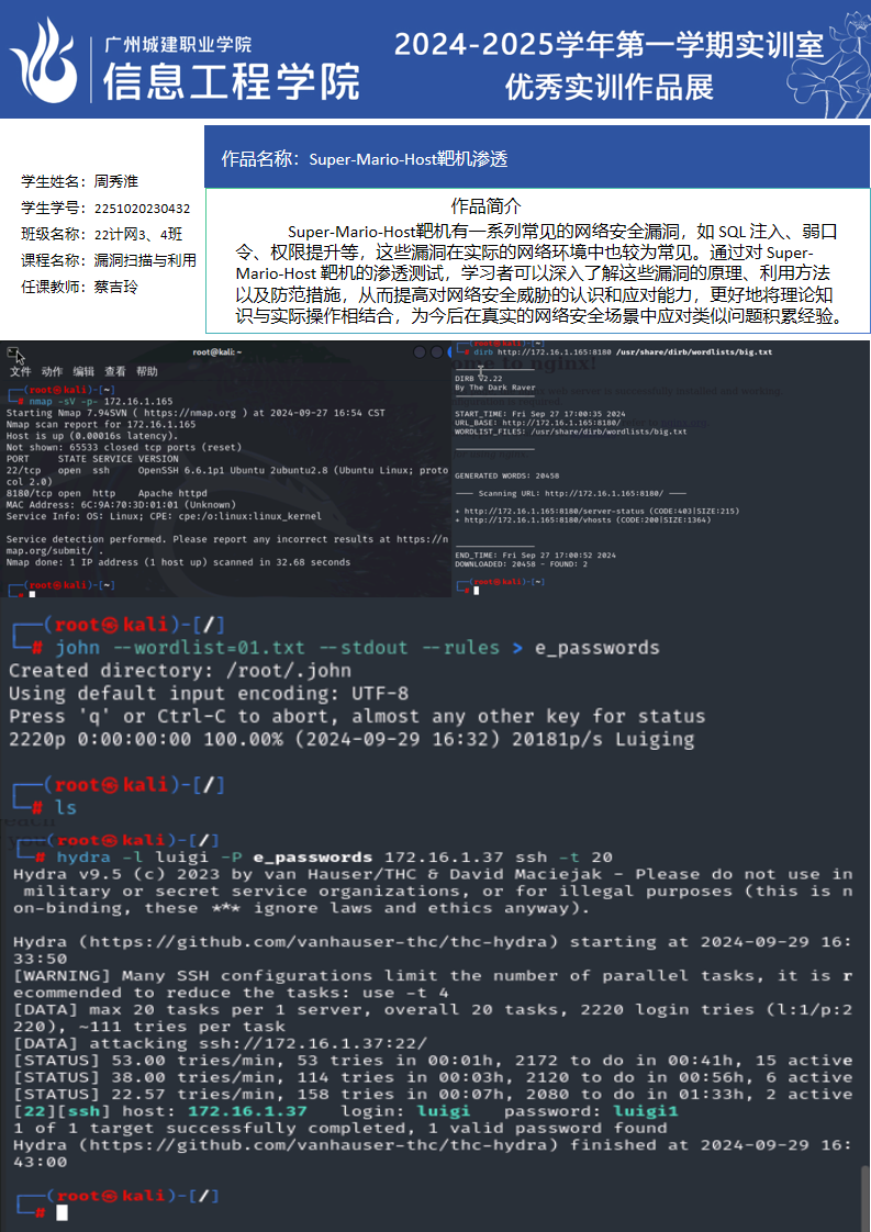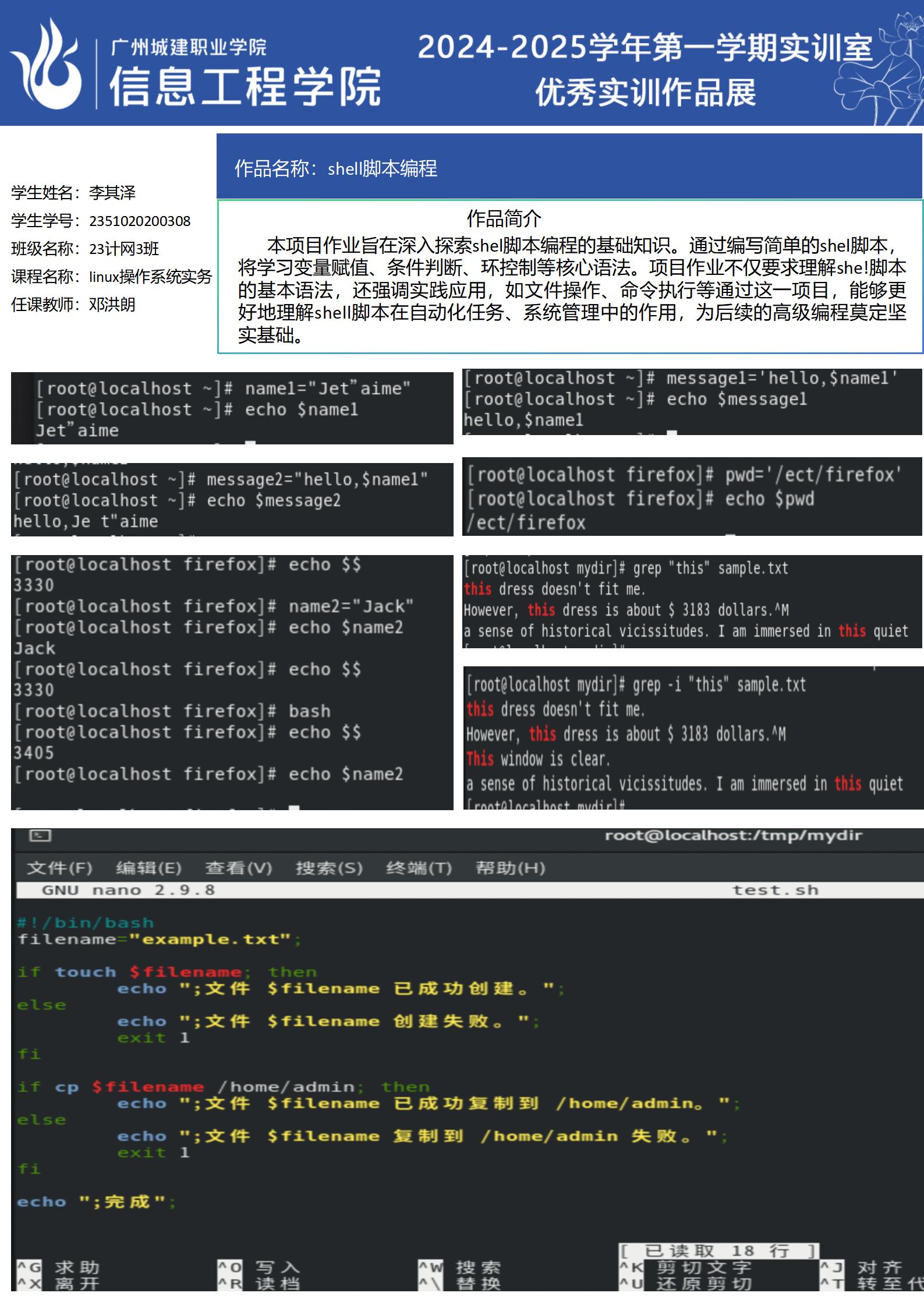 太阳成集团tyc2024-2025学年第一学期实训室优秀实训作品展(2312 云计算与网络运维实训室)