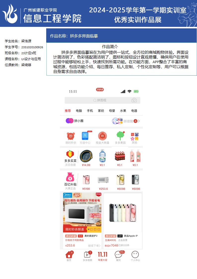 太阳成集团tyc2024-2025学年第一学期实训室优秀实训作品展(2405 移动互联网软件开发实训室)