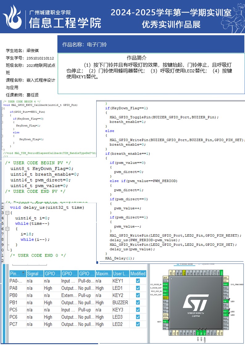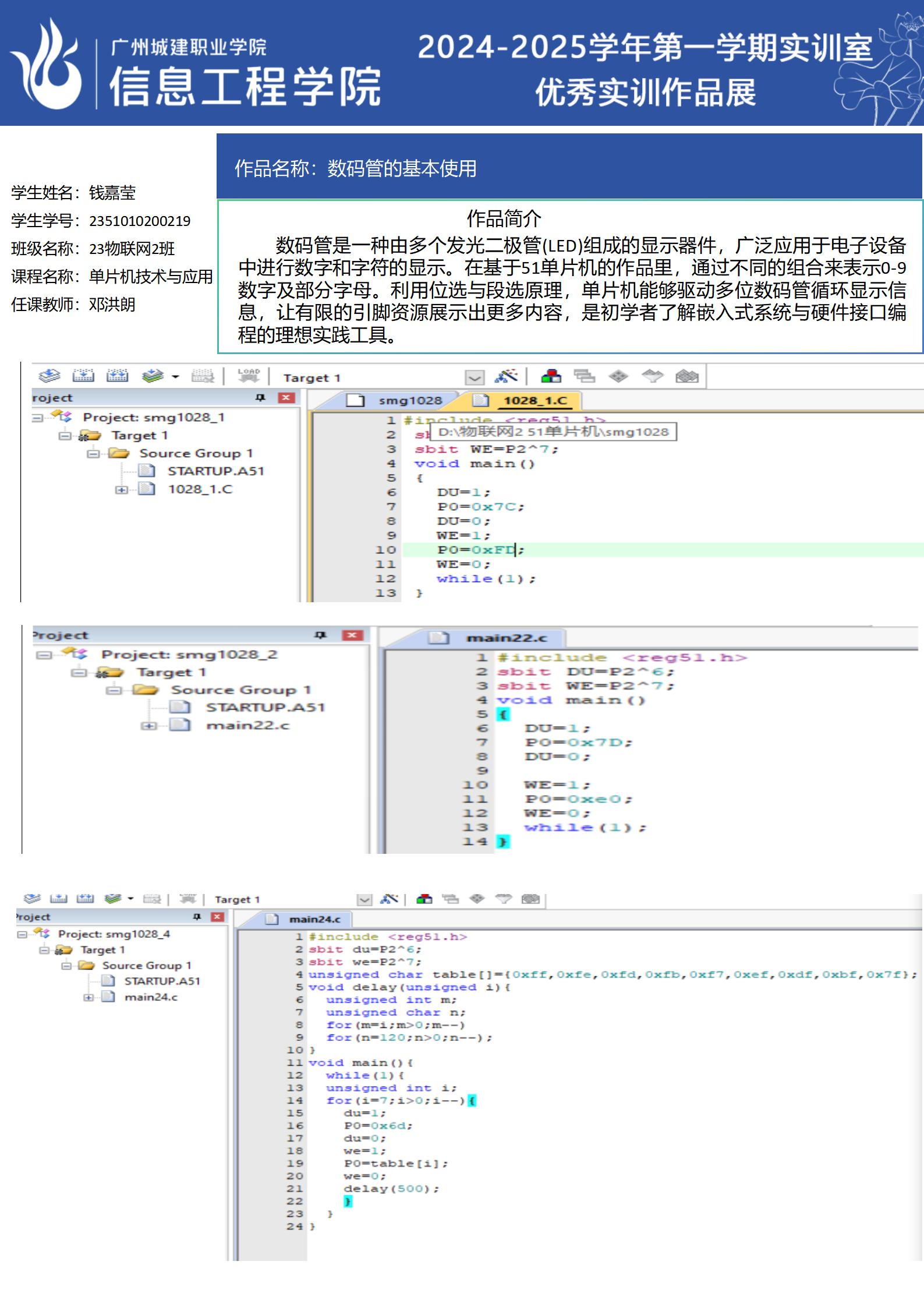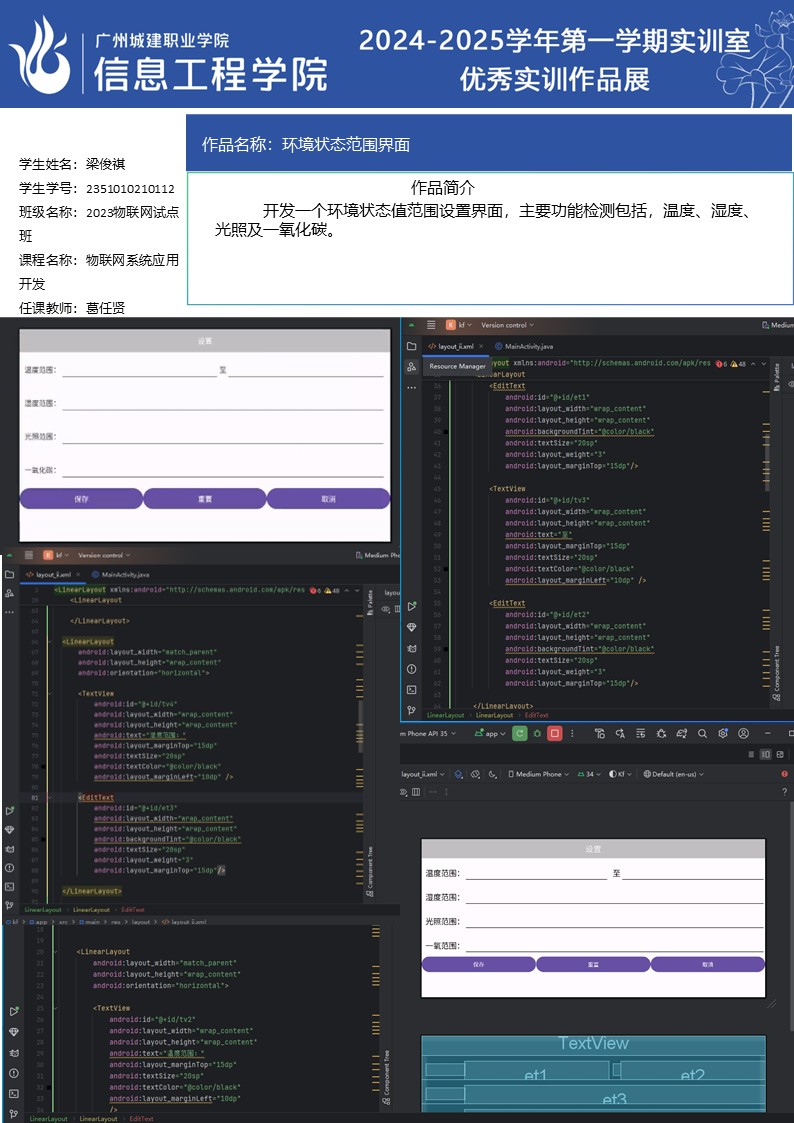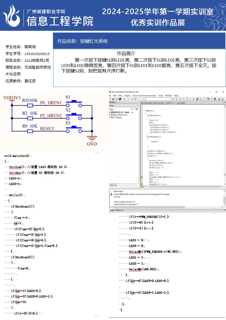 太阳成集团tyc2024-2025学年第一学期实训室优秀实训作品展(2411 物联网应用技术实训室)