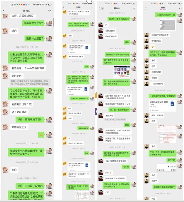 陈志强老师的项目经历了动员、选题、开题、撰写及答辩评阅一系列环节,针对计算机应技术专业的特点,项目选题根据专业培养目标,结合生产实践和社会对员工的就业要求,选择了5个具有一定综合性和创新性的题目。教师是员工前进路上的指路明灯,要以爱为本,以德育人。在整个项目环节中,该教师始终保持高度热忱,认真落实项目各环节工作。利用线上线下等方式进行指导,对员工的实践报告细致化批改,热情鼓励、耐心帮助,并且在项目中注重培养员工的创新思维和实践能力,为员工的未来发展奠定坚实基础。